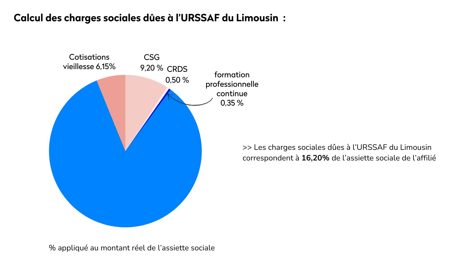 En temps normal, les charges sociales dûes à l’URSSAF du Limousin par l’artiste-auteur représentent 16,20% de son assiette sociale. En cas de surcotisation, le montant de la cotisation vieillesse étant de 6,15%, il faudra compter : 10,05% du montant de l’assiette sociale réelle + 6,15% de 600 SMIC horaire (soit 429,89 € en 2024). Les schémas ci-dessous devraient vous aider à y voir plus clair ⤵️